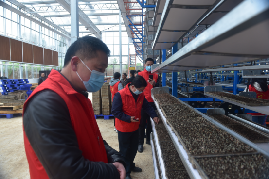 “小徐,你这个辣椒苗上的白色斑点是前段时间的倒春寒造成的冷害,要打一次含氨基酸或腐植酸或海藻酸的水溶肥,加甲基硫菌灵或百菌清等药剂,带肥带药后,抓紧利用这几天的冷尾暖头好天气,选择苗势较好的及时移栽,确保移栽后有三四个晴好天气,及时缓苗。”3月24日,在赫山区蔬菜种植户徐先生的蔬菜大棚里,赫山区科技专家服务团成员王迪轩正在为徐先生的辣椒苗“把脉问诊”。 “这机插秧之所以出现谷种在上面、根长芽少的现象,是催芽室的湿度小(相对湿度80%左右)的缘故。应把温度调到30-32℃,湿度达到95%以上。”智慧农业、农业信息化专家李绪孟接到江南生态农业科技开发有限公司技术员的咨询电话后,还有点不放心,亲临现场指导该公司的智慧农业育秧工厂开展密室叠盘催芽育秧。 当前正是春耕备耕的关键时期,又遇国内疫情复杂,如何保春耕、稳生产,赫山区科技专家服务团八十多位专家紧急行动起来,利用QQ、微信、电话、邮箱等开展科技服务,遇到“疑难杂症”时,也在防疫规定下开展现场指导,做到抗疫情保生产两不误。 (益阳市科技局农社科 谭云霞 何永梅)