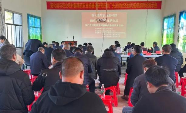 12月7日,益阳市安化县联合农业农村部南京农业机械化研究所在马路镇湖南坡茶业有限公司开展先进智能茶园机械装备现场演示活动。农业农村部南京农业机械化研究所原党委书记、副所长曹曙明,省农业农村厅农机化处处长张才道出席活动。