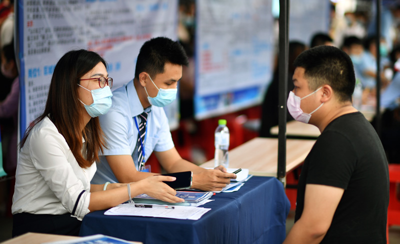 4月18日,在海口市举行的“战疫情·促就业”大型综合性招聘会上,用人单位与求职者现场交流。在做好疫情防控工作的前提下,此次招聘会邀请了100多家企业参加,提供就业岗位4000个。新华社记者 郭程 摄 “有加有减”保市场主体,留得青山赢得未来 这是一道独特的“加减法”: 减——全年为企业新增减负超过2.5万亿元,宽带和专线平均资费降低15%,减免国有房产租金,鼓励各类业主减免或缓收房租…… 加——鼓励银行大幅增加小微企业信用贷、首贷、无还本续贷,大型商业银行普惠型小微企业贷款增速要高于40%…… 阶段性政策叠加制度性安排,放水养鱼,助力市场主体纾困发展。 浪潮集团有限公司董事长孙丕恕代表说,“保市场主体就是保就业,保就业才能保民生。要让这些政策落地生根,让更多的市场主体如雨后春笋!” “产业链上下游是命运共同体。作为龙头企业,也要带动中小微企业共渡难关。”全国工商联副主席、正泰集团董事长南存辉委员说,各项政策持续发力,就能使中小微企业得到更加精准有效的扶持。