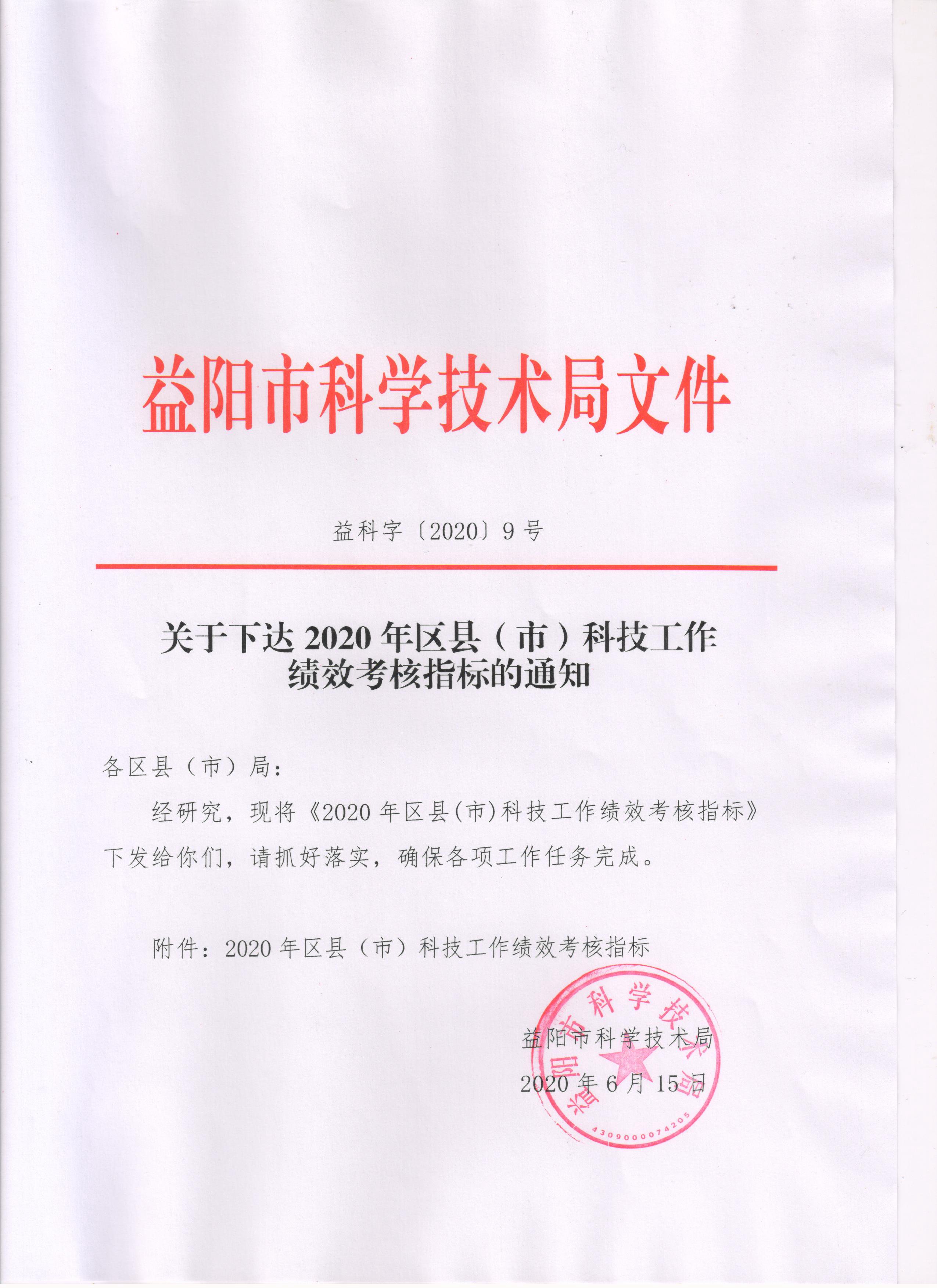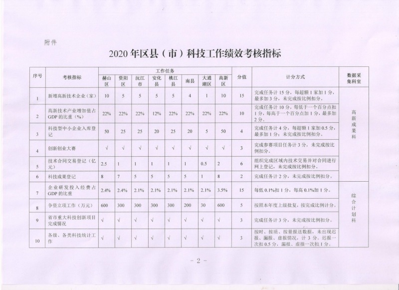 关于下达2020年区县(市)科技工作绩效考核指标的通知