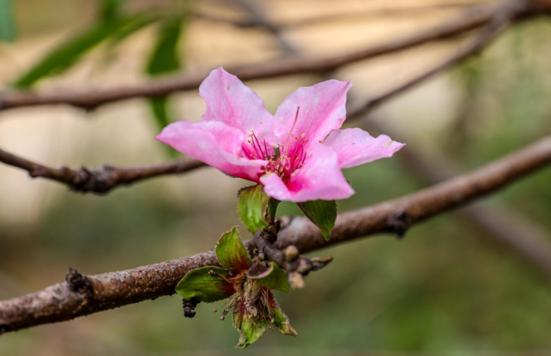 村民潘建华家门口一朵朵桃花在枝头开得正旺
