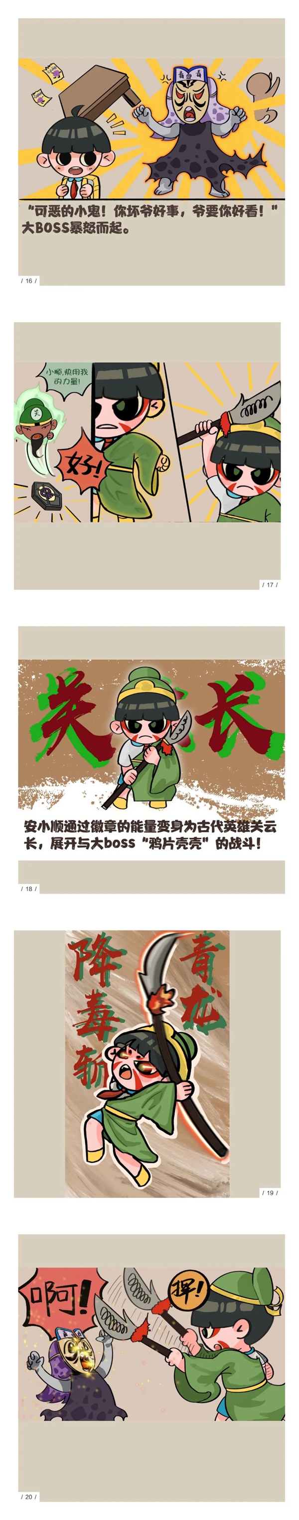 《小顺猎毒记》融合中国传统文化和贵州地域文化元素,以诙谐幽默的漫画和语言来叙述学生安小顺在获得英雄人物“关羽” “张飞”的力量后,与大魔王“鸦片壳壳”展开一系列的较量并最终获胜的故事。故事以介绍各类毒品,通过倒叙的手法来叙述,并穿插 毒品知识彩蛋,在提升阅读兴趣的同时,增强青少年群体识毒、防毒、拒毒的能力。
