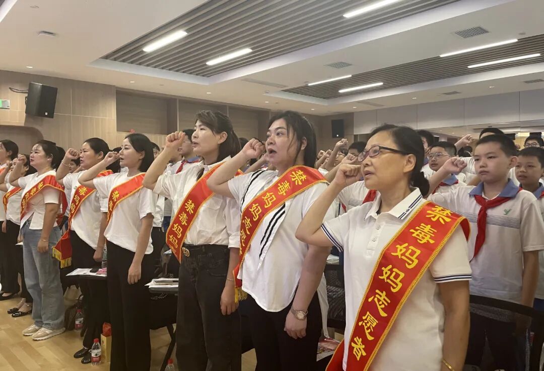 活动现场,来自中心城区的150余名青少年和禁毒妈妈志愿者宣读禁毒倡议书,集体宣誓《湖南禁毒宣言》,并为10名禁毒妈妈代表颁发“禁毒妈妈志愿者”绶带。