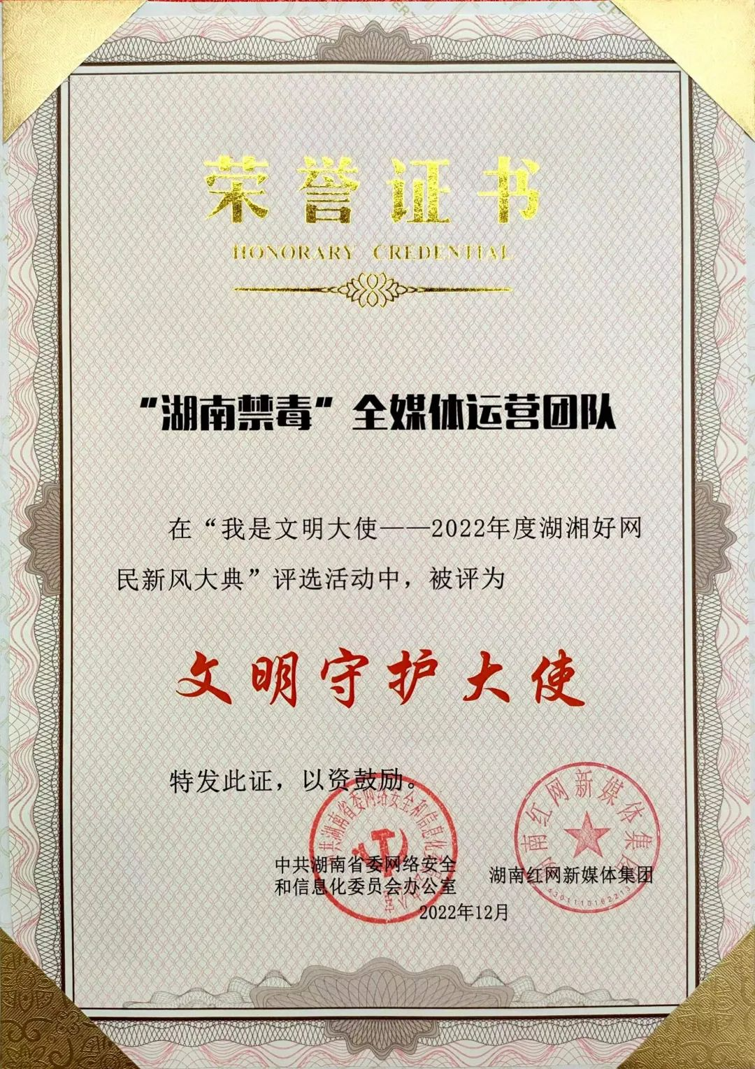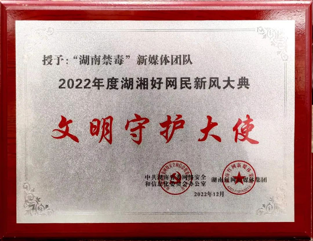 经过前期的资格审查、资料初审,遴选出205名候选对象并进行大众云投票;经评委会与各地网信部门多轮推荐与评选,最终产生了40名2022年度湖湘好网民人选及12家单位获评优秀组织奖。其中,“湖南禁毒”全媒体运营团队获评2022年度湖湘好网民“文明守护大使”。