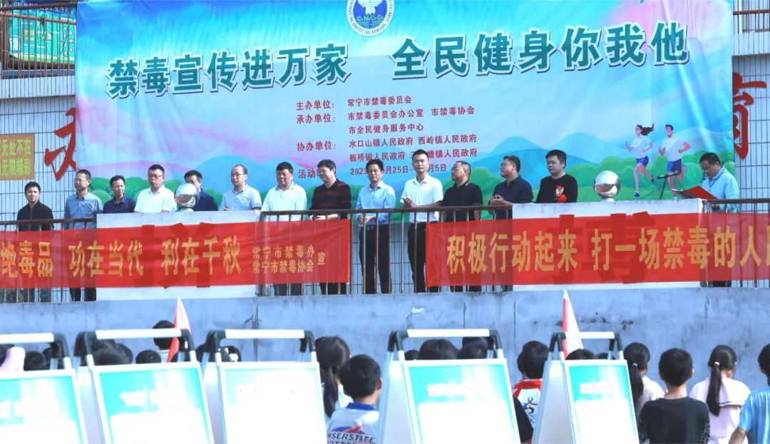 为深入开展禁毒宣传进万家活动,进一步增强全民识毒、拒毒意识,营造绿色无毒、健康生活的社会环境。11月3日,由常宁市禁毒委员会主办,市禁毒办、市禁毒协会、市全民健身服务中心承办的“禁毒宣传进万家,全民健身你我他”主题禁毒宣传活动在板桥镇成功举行。市禁毒办、市禁毒协会、市全民健身服务中心、板桥镇全体镇、村(社区)干部以及禁毒志愿者、社区群众、常宁五中学生等600余人参加活动。市禁毒协会会长欧厚娣宣布活动启动,板桥镇镇长赵子任致辞。
