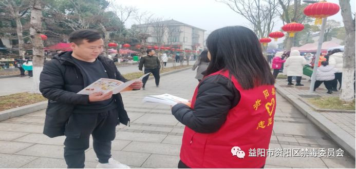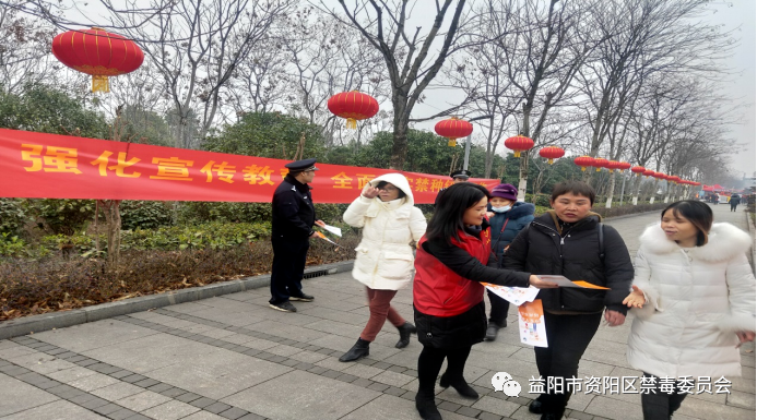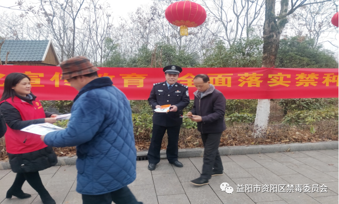 资阳区全面打好春夏“禁种铲毒”战役,2月16日上午, 在资阳区紫薇村景区, 资阳公安分局干警与志愿者,主动作为开展宣教工作,走村入户、深入田间地头,积极向辖区群众宣讲禁种铲毒的重要性及毒品给人类和社会带来的严重危害,起到了以点带面,普及群众的良好效果。