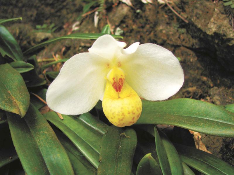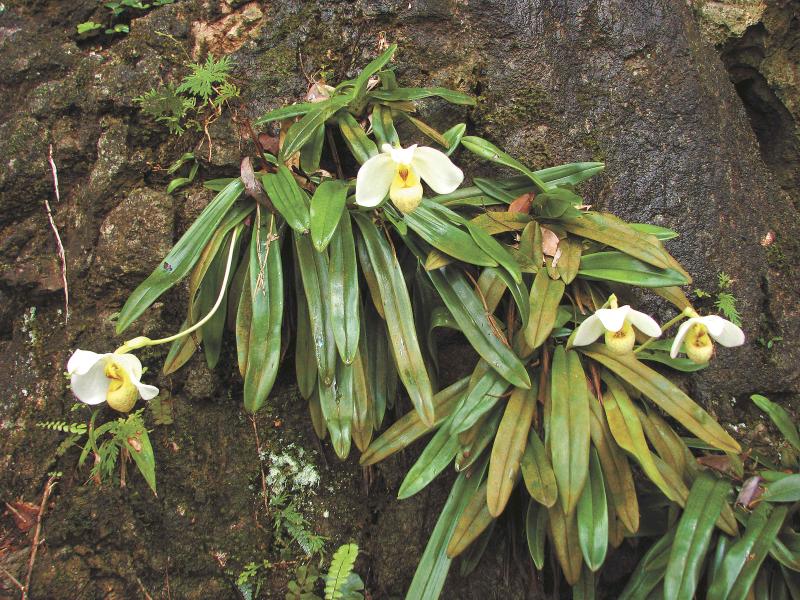岩壁上的白花兜兰 许为斌摄
