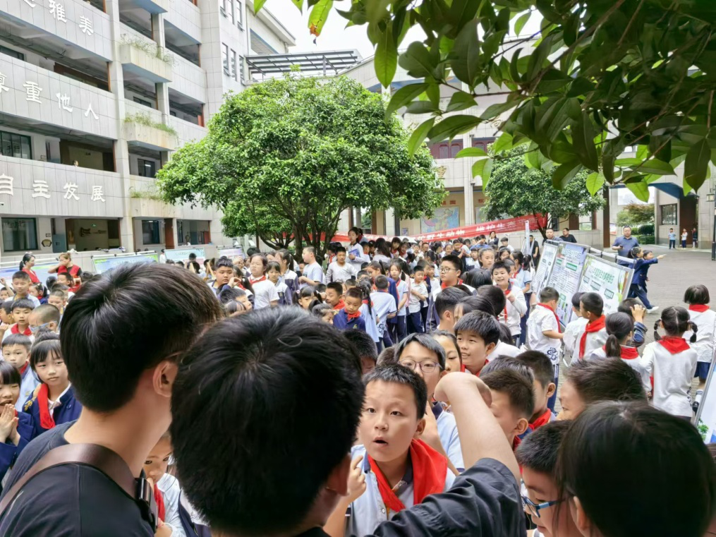 20日 8时,天空蒙雨渄渄,志愿者在升旗仪式后 同学们分享益阳市生物多样性的知识,并在全校60个班级播放了宣教片。学生代表在仪式上作出保护生物多样性庄严承诺。9时—12时,在龙洲小学教学楼之间举行了生物多样性展板、标本展示和课余时间有奖问卷抢答,同学们十分踊跃,对展出的展板和图片仔细阅读、认真辨认,并交流心得,对有奖问答更是异常积极,三节课余时间,整个天井被围得水气不通,近800份文具用品被领一空。