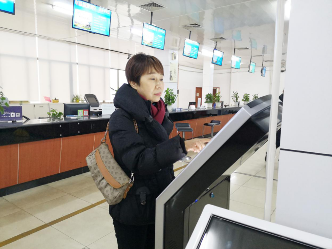 (企业工作人员在自助设备上办理业务) |