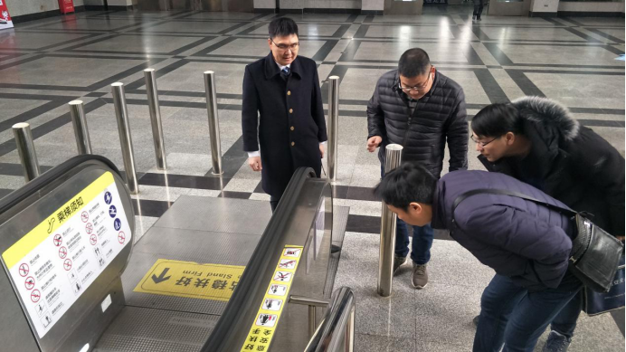 (市局党组成员、总工程师刘青峰带领特设科和省特检院益阳分院负责人到益阳火车站检查电梯运行及维保情况) |