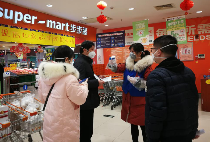 检查组来到步步高超市,重点查看了生鲜肉食区、了解了超市货源储备情况。当看到超市工作作员对顾客进行体温测量时,龚建夫给予了充分肯定。同时,要求超市稳定物价、保证供应,做好清洁消毒工作,并加强对进入超市顾客的防疫宣传。 |