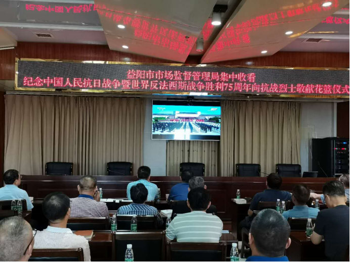 9月3日是中国人民抗日战争暨世界反法西斯战争胜利75周年纪念日。为大力弘扬爱国主义优良传统和抗战精神,市市场监管局组织局机关干部职工集中收看了纪念中国人民抗日战争暨世界反法西斯战争胜利75周年向抗战烈士敬献花篮仪式。