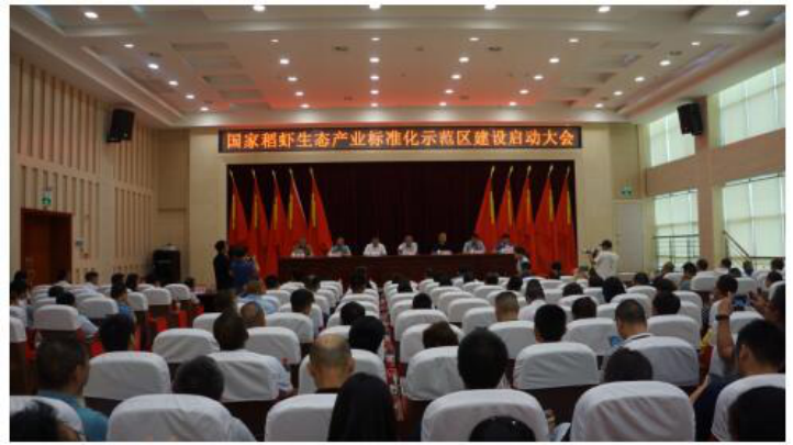(启动大会现场) 近日,国家稻虾生态产业标准化示范区建设启动大会在南县召开。湖南省市场监管局总工程师李丁,湖南省标准化处处长王宇,益阳市市场监管局党组书记朱崇文等出席大会。