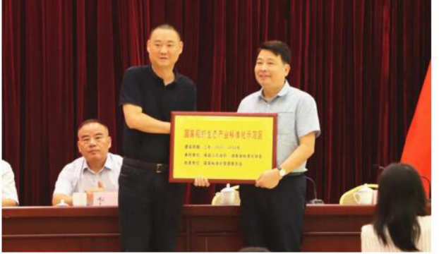 (湖南省标准化处处长王宇(左)为南县国家稻虾生态产业标准化示范区进行授牌) 据了解,南县从2004年开始积极探索并推广“稻虾共生技术”,现拥有稻虾生态面积55万亩,年产小龙虾9万吨,稻虾米27万吨,综合产值规模突破100亿元,产业规模影响力已跻身全国三强,被授予“中国稻虾米之乡”、“中国生态小龙虾之乡”。“南县稻虾米”获得国家地理标志证明商标、“南县小龙虾”获得国家地理标志保护产品。今年4月份,国家标准化管理委员会发布《国家标准化管理委员会关于下达农业农村及新型城镇化领域标准化试点示范项目的通知》,“国家稻虾生态产业标准化示范区”被列入第十批国家农业标准化示范区建设项目。