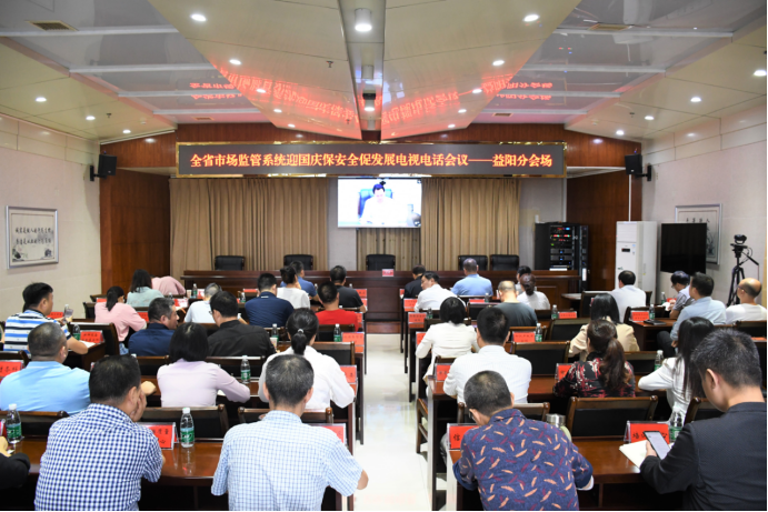 9月16日,全省市场监管系统“迎国庆 保安全 促发展”电视电话会议召开。益阳市市场监管局组织机关各科室、各直属单位主要负责人在益阳分会场参加会议。