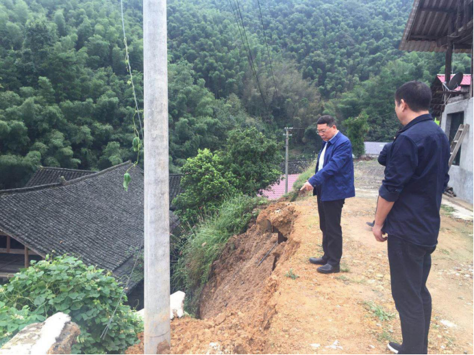 (朱崇文书记现场查看渠江镇夫溪村华堂组雨水浸泡塌方地段) 在此期间,朱崇文现场查看夫溪村华堂组雨水浸泡塌方地段,并要求村委和驻村工作队立即采取措施,保证人居安全,保障周围村民的用水用电。随后走访了该村帮扶对象建档立卡贫困户王修武家,勉励他继续巩固脱贫成果。