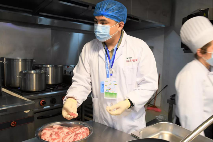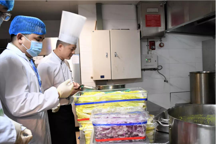 当天,市市场监管局对此次活动的就餐酒店——碧桂园凤凰酒店开展了食品安全现场检查及食品抽检监测。检查人员对酒店食堂进行了检查,查看了菜单有无慎用、禁用的食品,并对食品贮存、人员卫生、加工操作、工具容器清洗干净、餐具消毒等情况进行检查。同时,对酒店食堂部分菜品进行了快速抽样检测,抽检菜品主要为肉类、蔬菜类等,现场抽检检测结果均为合格。