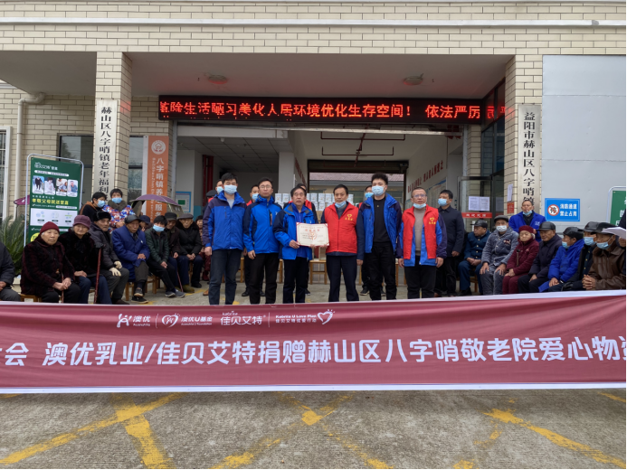 赫山区是省文明委确定的首批省级新时代文明实践中心试点区县。当日,省市场监管局、澳优集团看望慰问了在八字哨镇敬老院生活的老年人,为敬老院捐赠了价值10万元的佳贝艾特营嘉800g装奶粉240罐。详细了解了实践中心在构建基层思想政治工作新阵地、新平台、新载体方面所取得的经验和成果,对工作中存在的困难提出指导建议。