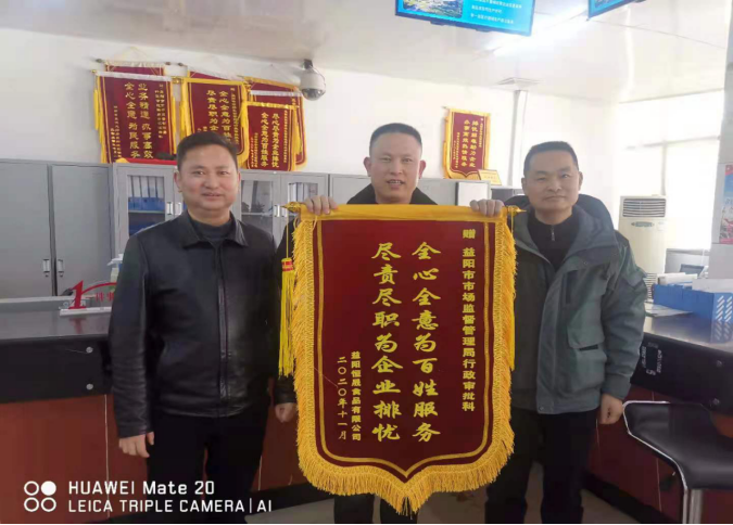 “你们加班加点的工作为我们赢得了时间,帮公司解决了大难题,实在太感谢你们了!”12月21日,益阳恒晟食品有限公司法人代表李伟红向市政务大厅市场监督管理局窗口赠送一面“尽心尽责为企业排忧,全心全意为百姓服务”的锦旗,感谢窗口食品生产许可审批人员为企业排忧解难,加班为其办理食品生产许可证变更延续业务。