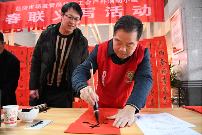 无联不成春,有联春更浓。在新春佳节即将到来之际,为传承中华民族优秀传统文化,营造喜庆热烈、文明祥和的节日氛围,2月5日上午,益阳市市场监管局在办公楼一楼大厅开展春联义写活动。