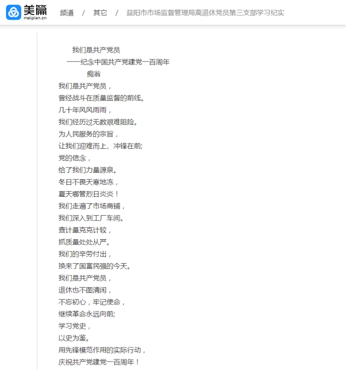 活动现场,离退休全体同志向烈士纪念碑敬献花蓝,缅怀先烈。通过此次活动,大家纷纷表示,要认真学习党史,以史为鉴,不忘初心、牢记使命,永葆共产党员本色。活动结束后,离退休老党员彭必文同志还制作美篇并发表随笔《我们是共产党员——庆祝中国共产党建党100周年》。