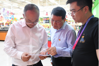 在沃尔玛超市,市场负责人向杨智华介绍了超市经营情况以及卫生、防疫、消防的具体管理措施。杨智华抽查了儿童学生用品,详细了解质量安全管理情况,查验了超市冷链柜台所售食品的供货商许可证明、检验检测报告等相关材料台账。在沃尔玛美食城,重点就亮证经营、“三防”设施、餐厨卫生等环节进行检查,对检查发现的问题现场提出整改要求,要求对问题整改情况进行跟踪落实,确保问题整改到位。