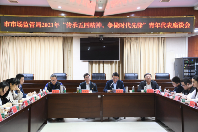 为庆祝建党100周年,锤炼新时代青年干部党性修养,5月7日,益阳市市场监管局以“传承五四精神 争做时代先锋”为主题,召开青年代表座谈会。局长龚悟云出席会议并对青年干部提出殷切期望。龚悟云寄语青年干部进一步弘扬“五四”精神,勇立时代潮头,争做时代先锋,为市场监管事业改革发展贡献青春力量。党组书记朱崇文主持会议,33名来自市局机关和直属单位的青年代表参加会议。