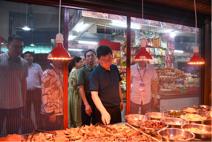 在桃花仑农贸市场进行检查 督查组重点查看了桃花仑市场、鹅洋池市场以及火车站、福中福、建设街社区周边食品“三小”门店。对发现的问题,督察组进行现场调度,要求责任单位提高认识,高度重视迎“国卫”复审工作,制定整改计划,明确整改期限,在规定时间内按照相关标准完成整改。