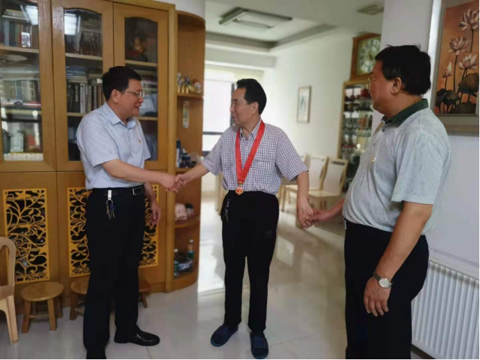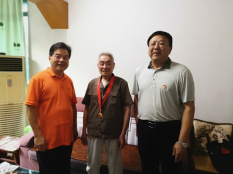 (龚悟云为老党员史勇刚佩戴纪念章) 走访慰问中,局领导与老党员们促膝交谈,悉心询问他们的日常生活和身体健康状况,听他们讲述矢志不渝跟党走的难忘经历,一起回顾党的百年光辉历程,并感谢他们为党的事业做出的积极贡献。同时祝福他们生活幸福、身体健康。