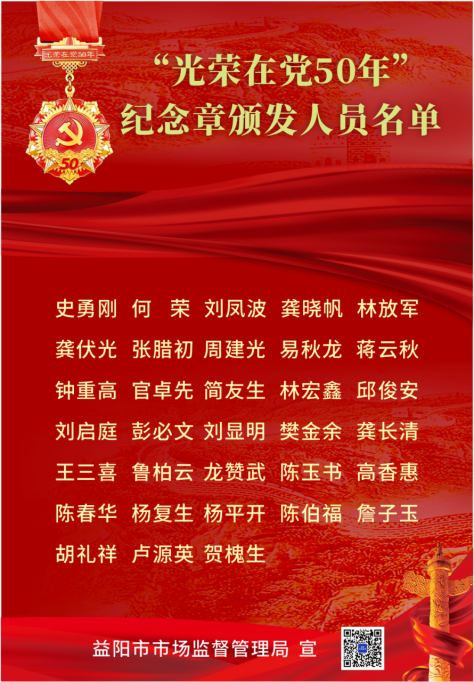 “七一”前夕,市市场监管局共为机关33名离退休老党员颁发了“光荣在党50年”纪念章。