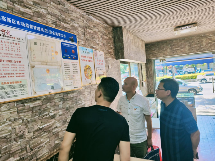 (龚悟云和执法人员检查门店亮证经营情况) 近期,为迎接国家卫生城市复审,提升城市形象,益阳市市场监督管理局高度重视,7月9日召开工作调度会,党组书记朱崇文部署迎检工作,进一步压实责任,强化值守。连日来,全局取消双休,由局领导班子成员分组带队到各街道进行现场督查,重点督查中心城区、城乡结合部和农贸市场、车站、学校、医院周边等场所的食品“三小”门店的证照和卫生状况等,就交办国卫复审亟待整改的问题进行逐一消号。