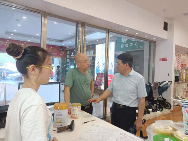 7月10日,益阳市市场监督管理局局长龚悟云带领市市场监管综合行政执法支队人员,在益阳市金山路第四人民医院、丁香小学附近门店以及江金农贸市场开展国卫复审迎检督查,检查各门店特别是“三小”门店的证照和卫生状况、熟食摊点的“三防”措施等情况。