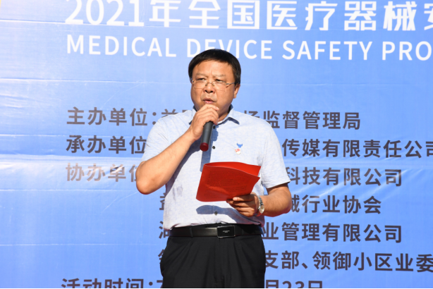 (市市场监管局党组成员、副局长鲁志强在启动仪式上讲话) 此次宣传周活动以“安全用械 创新发展”为主题,突出医疗器械服务人民群众生命健康、追求健康的宗旨和使命,从2021年7月19日开始至7月23日结束。通过举办安全用械知识进小区、进园区、进企业活动、知识有奖答题、医疗器械法规培训、风险商务座谈会等不同形式的活动,提高公众用械安全意识,引导企业落实质量安全主体责任,规范医疗器械生产经营使用行为,促进我市医疗器械行业健康发展。