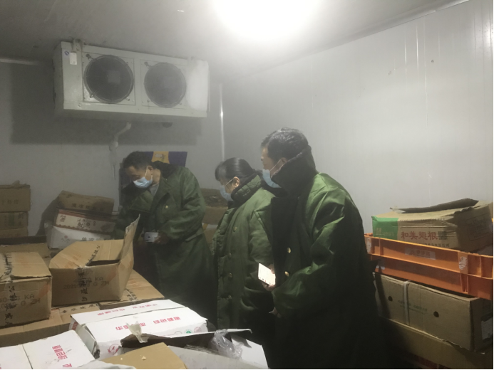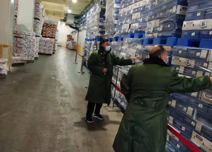 龚悟云(右二)带队在红联大市场检查冷链设施 市市场监管局自8月1日起在全市开展为期一个月的疫情防控市场监管重点领域专项整治行动。局长龚悟云在行动部署会上强调,要把疫情防控作为当前首要任务,严格落实疫情防控措施,突出进口冷链食品、四类药品、疫苗等三类产品监管,全面实现“质量可控、信息可溯”,守护人民群众生命健康安全。 “人物并防”强化食品全链条管理,让市民买的安心、吃的放心 进口冷链食品存在新冠病毒输入风险。在益阳市红联冷链物流有限公司,龚悟云深入冷库内,现场检查了冷链食品疫情防控各项措施,抽查了部分进口冷冻肉制品的进货台账、检验检疫证明,询问了冷链食品装卸、贮存以及冷库设施设备消杀、冷库冷链各类从业人员核酸检测和冷链货物流向等涉及疫情防控的工作落实情况,并进行现场核实。他强调要始终绷紧疫情防控之弦,突出重点,做到“人”“物”检测全到位,严格落实进口冷链食品“三专、三证、四不”和市局“十个一律”有关防疫工作要求,落实“湘冷链”追溯平台应用,做到注册单位应注尽注,流转数据应传尽传,加强高风险冷链食品全链条管控。