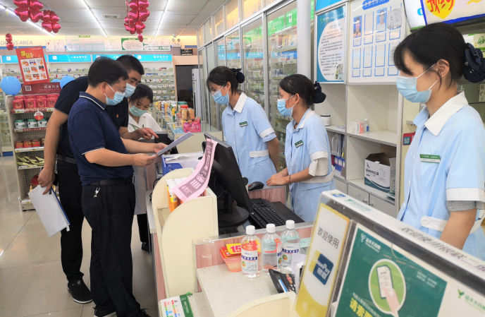 益阳市市场监督管理局局长龚悟云(左二)带队在市内各药店开展专项整治行动督查