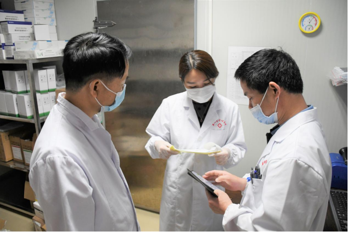 在新冠病毒检测试剂储存库房,检查人员还重点检查了库房冷藏冷冻设施是否采用温控监测报警系统、供货方及物流配送方资质索取情况、冷链交接单和运输途中温度实时记录收集情况、检验室使用冷藏冷冻柜有无温度显示和记录情况等。执法人员提醒相关使用单位要严格管理新冠病毒检测试剂,安排专人负责、定期检查,做到新冠病毒检测试剂储存、使用符合法规要求。