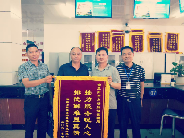 在疫情防控形势骤然紧张时,原来10天才能办好的审批手续,两天内顺利办结。8月16日下午,桃江县竹缘林科开发有限公司法定代表人肖学文来到益阳市市场监管局政务服务窗口,向工作人员送上了一面印有“接力服务暖人心、排忧解难显真情”的锦旗。