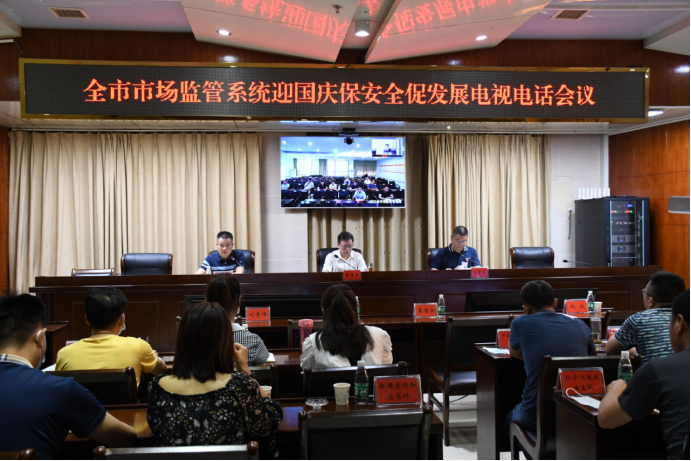 (召开全市市场监管系统迎国庆保安全促发展电视电话会议) 会议指出,国庆、中秋佳节即将来临,市委第七次党代会召开在即。维护市场领域监管安全,为“两节一会”营造安定祥和的市场环境,走稳走好“十四五”开局之年,是当前重要的政治任务和工作任务。要坚持以人民为中心的发展思想,认真落实中央、省、市决策部署,更好统筹发展和安全,坚决打好安全生产“保卫战”,以优异成绩向中华人民共和国成立72周年献礼。