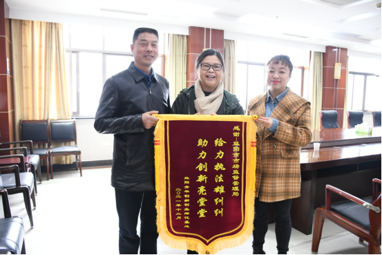 “真心感谢你们,做梦也不敢想还能领到转供电主体退还电费18168.60元…” 12月10日,益阳青年创新创业基地负责人刘燕向益阳市市场监督管理局赠送“给力执法雄赳赳、助力创新亮堂堂”锦旗,对益阳市市场监管综合行政执法支队五大队执法为民主动服务,为企业降低用电成本等方面做出的努力表示衷心的感谢。市局党组成员、副局长刘志春代表单位接受锦旗。