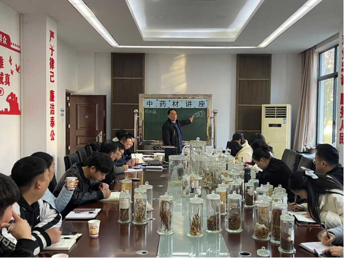 培训邀请了湖南省中药材及饮片鉴定资深专家、益阳市原药监局处级干部、原药检所所长胡厚仁现场授课,胡老师用自己多年的实战经验倾囊相授,以贝母、山药、桃仁、杏仁、蝉蜕、冬虫夏草等20余种常见中药材及饮片为例,结合标本实例、手绘简图等,深入浅出、通俗易懂地讲解了中药材和中药饮片外观特征、常见伪品鉴别等内容。培训过程中,参训人员踊跃发言,课堂氛围非常活跃。