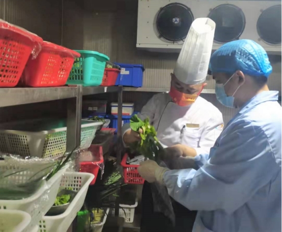 提前介入重预防。两会召开前期,组织行政监管力量对5家餐饮单位食品安全进行检查,了解两会餐饮服务安全保障工作准备情况,对食品安全设施设备、原料采购、索证索票、加工场所及流程、从业人员健康状况、餐具消毒、食品留样等重点环节进行逐一检查。 全程监管保安全。以“全力保障、万无一失”为目标,抽调10名业务骨干实施驻点监督,对每日菜品严格审查,对每餐菜单进行审核,对加工过程现场实时监督,督促接待餐饮单位把好食品原辅料和生鲜食品质量安全关,规范制作加工和留样,做好食品快检工作,对不符合食品安全标准的主副食品坚决不允许供餐,确保人大代表、政协委员两会,两会期间的饮食安全。