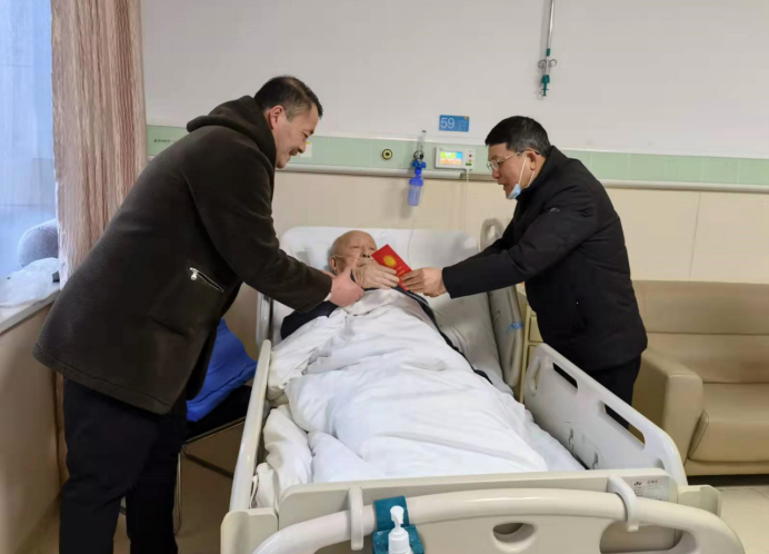 “何老,我们来看望您了!”伴随着一声亲切的问候,慰问组一行来到康雅医院的病房,看望老干部何荣,了解何老病情治疗情况,并送上慰问金,衷心祝愿新年快乐、早日康复。何老的家属向慰问组一行深表感谢。