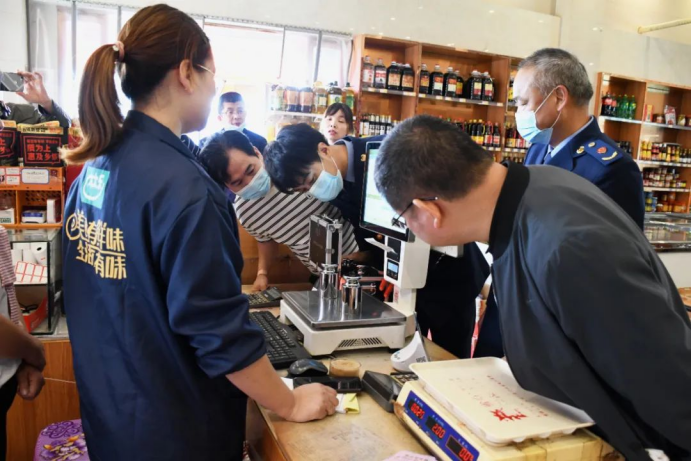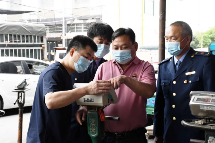 同时,执法人员深入红联农贸市场进行计量器具监督检查,用精准校正过的砝码测量商户的电子秤,判断电子秤是否准确合格,并现场检查计量器具是否经过检定,是否按照实际值进行结算、是否缺斤短两,是否使用作弊电子秤等。