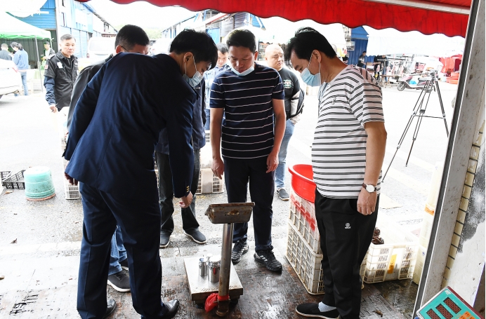 当天,市市场监管局党组成员、总工程师刘青峰带领市市场监管局、市计量测试检定所相关工作人员在秀峰水果市场开展现场检定服务,对市场在用计量器具进行覆盖检查、检定。主要检查在用计量器具是否依法进行了检定、是否存在使用国家明令淘汰的计量器具、是否存在计量作弊行为、是否存在超周期使用等问题。