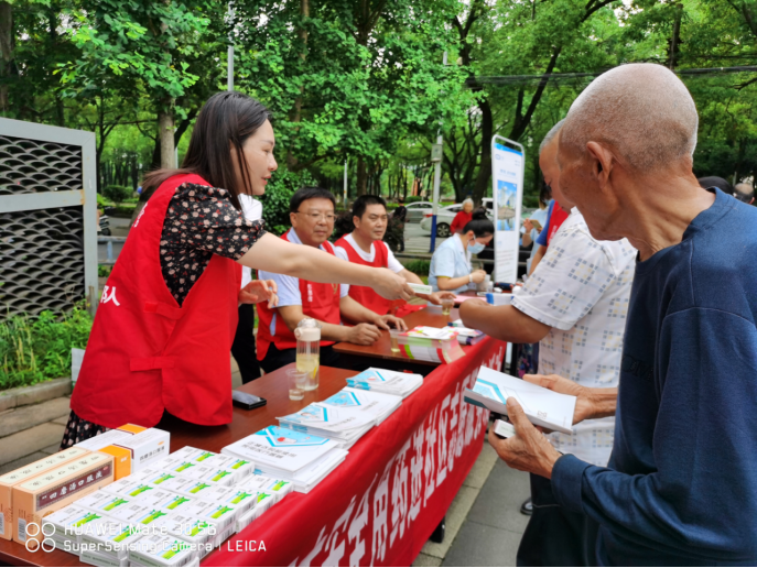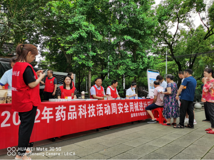 6月6日,益阳市赫山区金银山街道秀峰社区热闹非凡,来自益阳市市场监管局的工作人员正在为社区居民进行药品安全知识科普宣传,引来附近居民和群众驻足围观。