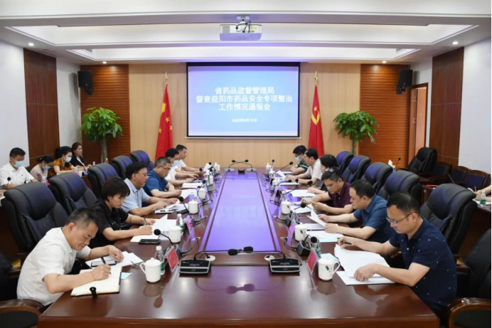 6月10日,省药品监督管理局督查益阳市药品安全专项整治工作情况通报会召开。省药监局局长黄东红出席会议并讲话。市人民政府副市长邓曙光、市市场监管局党组书记、局长朱崇文参加会议。 会议通报了6月6日至9日对益阳市本级及安化县、资阳区两个区县药品安全专项整治工作督查暗访的有关情况,听取了益阳市药品安全专项整治工作情况汇报。