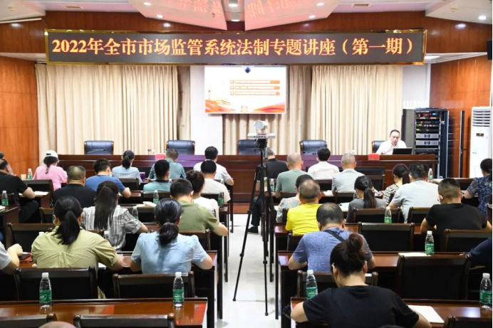 6月28日,市市场监督管理局举办行政执法专题讲座,宣讲《习近平法治思想学习纲要》(以下简称《纲要》)精神。市委全面依法治市委员会办公室秘书科科长何太平应邀授课。市局相关科室及执法支队共80余人在主会场聆听讲座,各区县(市)局210余名执法人员通过视频会议形式听取了讲座。