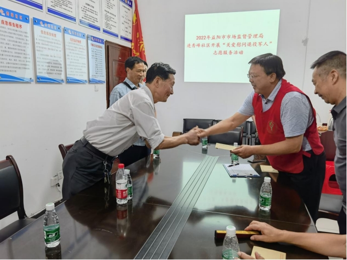 近日,在“八一”建军节即将来临之际,市市场监管局党组成员、副局长鲁志强带领机关志愿者深入结对联点的秀峰社区,开展“关爱慰问退役军人”主题志愿服务活动,对社区5位退役军人进行了关怀慰问,并送上慰问金,让退役军人深切感受到党组织的关怀和温暖。