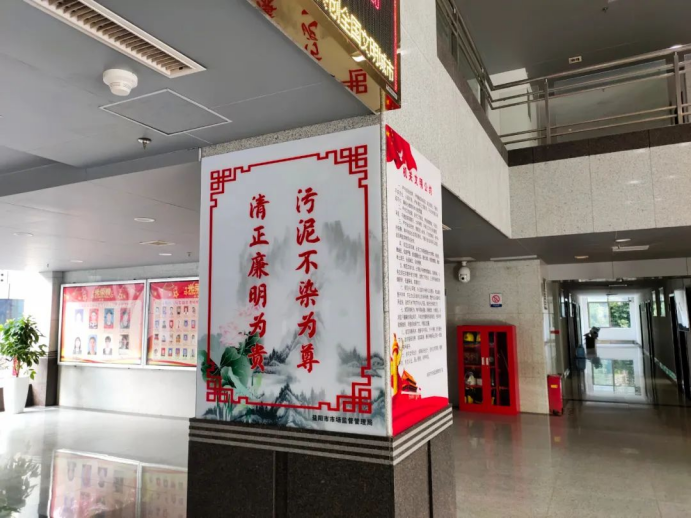 走进市市场监督管理局,办公场所有清廉宣传栏,办公楼有“廉廊”,走道里有“警句”,办公桌上有廉政桌牌……清廉宣传语、宣传栏随处可见,机关清风正气扑面而来。