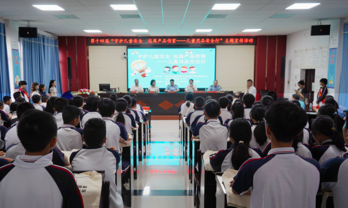 下午,湖南省市场监管局缺陷产品召回服务中心会同益阳市市场监管局一起走进海棠学校。省市场监管局缺陷产品召回服务中心主任王芳斌作科普宣讲,市市场监管局党组书记、局长朱崇文发表讲话,市海棠学校党总支书记陈新辉作倡议发言,市市场监管局二级调研员王猛主持活动。通过PPT讲解、播放宣传片等形式,为学生们介绍缺陷产品及危害、选择儿童用品的注意事项以及发现缺陷产品的反馈渠道等知识,重点宣传服装、作业簿、眼镜、玩具等儿童用品常见缺陷和认知误区,帮助学生们快速掌握保护自身安全的质量知识。在互动环节,学生们就关心关注的问题踊跃举手、积极提问、现场解答,气氛十分热烈,进一步深化了学生们对质量安全的认识。